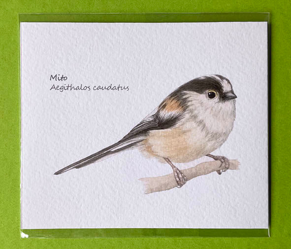 Mini-lámina de tamaño 11x13 cm de mito (colección Aves de Asturias). Impresa sobre papel simulando la textura del papel de acuarela, a partir de ilustración original pintada en acuarela.